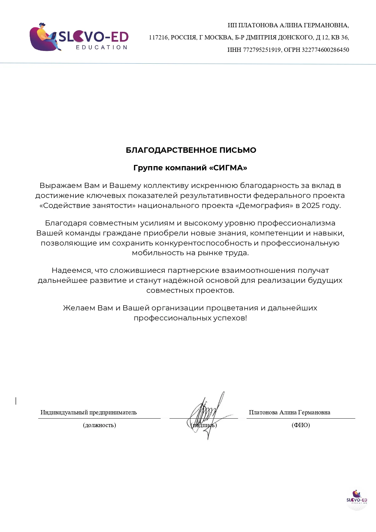 Этот документ станет подтверждением прохождения обучения и повысит вашу востребованность на рынке труда как специалиста.